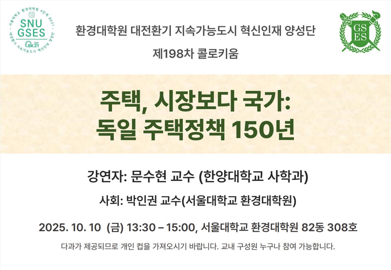 제198차 BK 콜로키움: 주택, 시장보다 국가: 독일 주택정책 150년(문수현 교수 / 한양대학교 사학과)