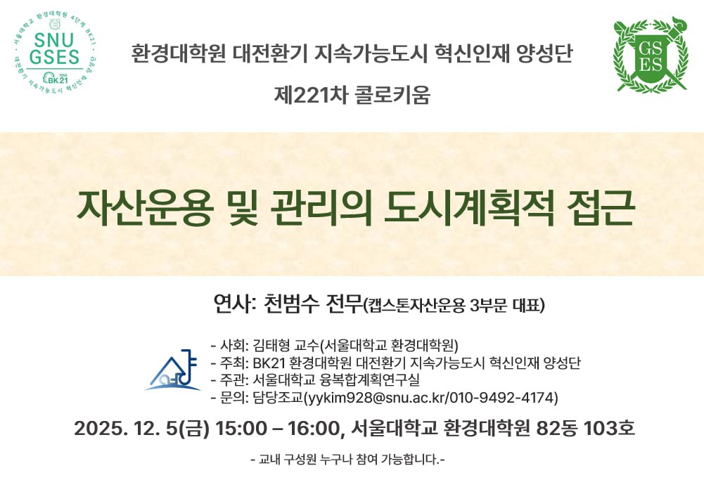 [제221차 환경대학원 BK교육연구단 콜로키움 안내]